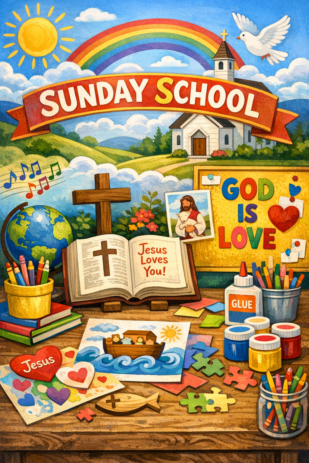 Children ages 3 and up are warmly invited to join us for Sunday School—a joyful time of learning, singing, and growing in faith. Each week, we explore Bible stories through songs, crafts, and age-appropriate lessons that help children know and love Jesus.